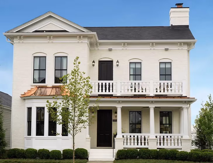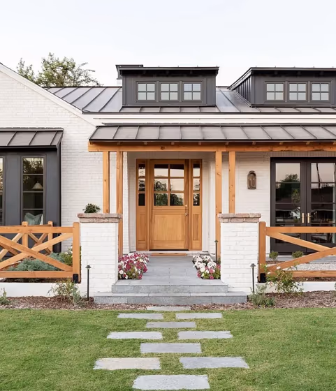 Looking for a fresh new look for your house exterior or starting from skretch? We’ve collected pictures of real-life homes that have been painted with this warm hue. Find inspiration for your house’s exterior, front doors, gates, shutters, frames or windows.