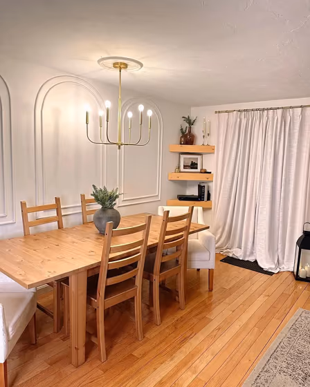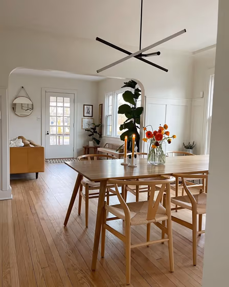 The color Benjamin Moore OC-45, also known as Swiss Coffee, exudes a timeless elegance that brightens up any space. This soft, neutral hue pairs beautifully with warm earth tones like terracotta and caramel, adding a cozy and inviting feel to the room. Complementing it with rich navy blues or sage greens can create a sophisticated and harmonious color scheme. Swiss Coffee is versatile and adaptable, blending seamlessly with both light pastels and bold jewel tones for a chic and modern look.