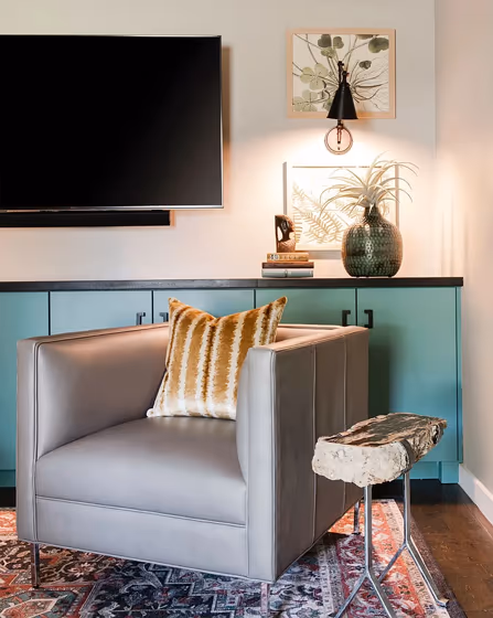 Act like a pro: Mixing warm and cool shades is a must have to get harmonius interior. Add accents that contrast with the primary color to create visual balance. If your walls are a warm color, don’t forget to add accent in cold colors (furniture, art, décor). A good practice is too use a complementary color scheme.