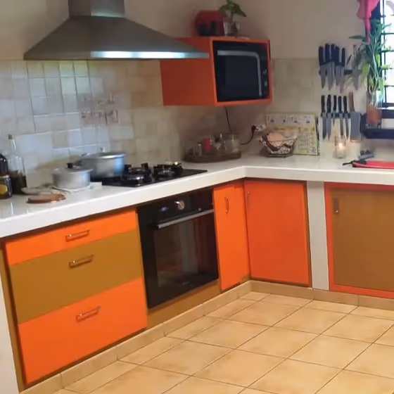 RAL Classic RAL 2009 on kitchen cabinets (2 photos)