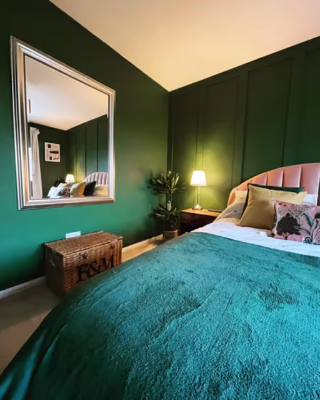 Use the slider to see how this dark green shade looks under different lighting: