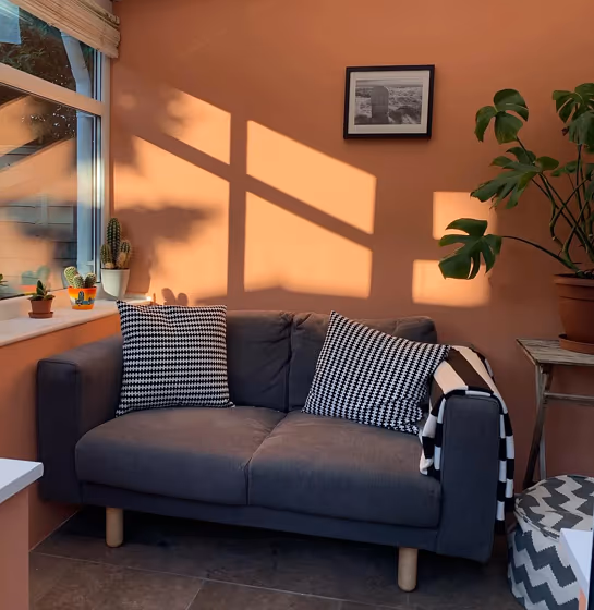 - Warmer hues make larger spaces feel more inviting