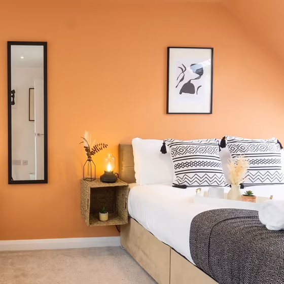 We’ve hand-picked a beautiful collection of photos of this amazing Beige shade used in real bedrooms. Take a look and imagine how this wonderful warm Mid-tone paint color could transform your own bedroom space.