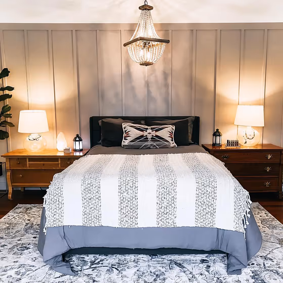We’ve hand-picked a beautiful collection of photos of this amazing Beige shade used in real bedrooms. Take a look and imagine how this wonderful warm Mid-tone paint color could transform your own bedroom space.