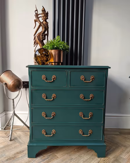 We’ve hand-picked a beautiful collection of photos of this amazing green shade used in real bedrooms. Take a look and imagine how this wonderful cool dark paint color could transform your own bedroom space.