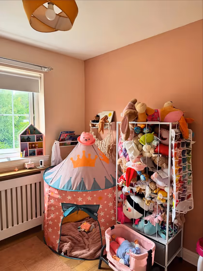 View the photos of real spaces painted with this pink that were not included in specific categories.Close-ups, painted furniture, storages and dressers, hallways, stairs and ceilings.