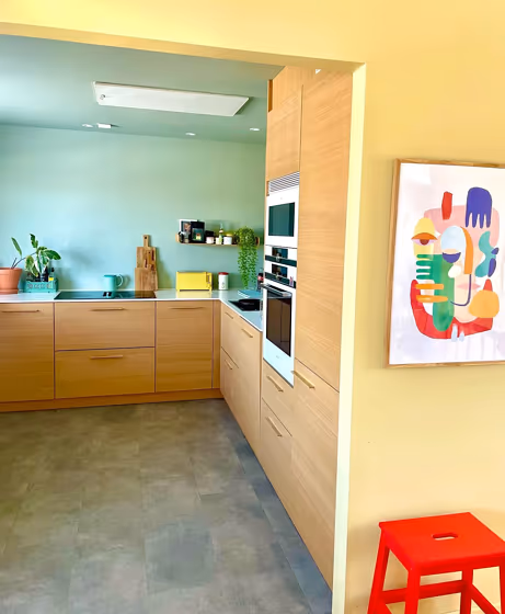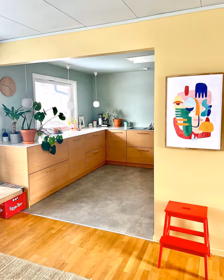 - Warm yellow shades bring a sunny and cheerful atmosphere to a space, making it feel lively and welcoming, perfect for kitchens, living rooms, and play areas.