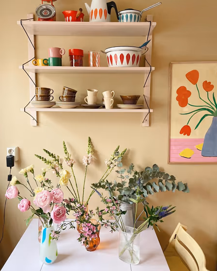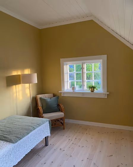 This color scheme is a combination of two shades that are opposite each other on the color wheel. The high contrast between these colors creates a vibrant and dynamic visual effect. For the color Velvet with a orange hue, complementary colors are those with a blue hue close to 219, such as Jotun Gustavian Blue and Classic Blue.