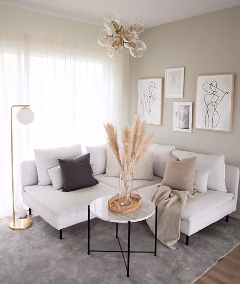 - Warm beige shades create a cozy and inviting atmosphere, making any room feel comfortable and welcoming, perfect for living rooms, bedrooms, and hallways.