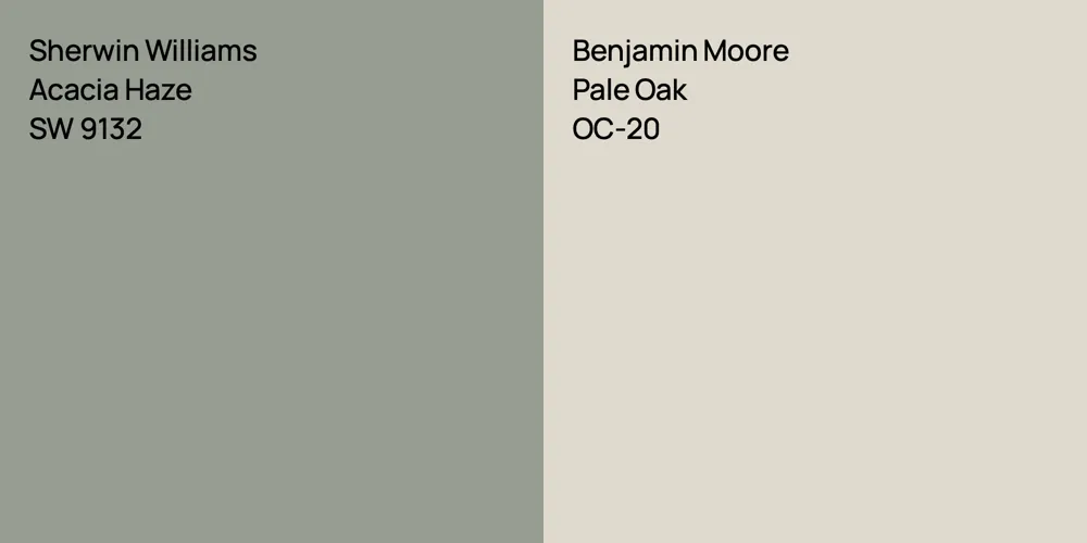 We understand how important it is to remember the details. The colors, each with their own unique beauty and value, are truly special. It's important to note that the colors have different hues. Sherwin Williams SW 9132 leans towards hues, while Benjamin Moore OC-20 is .