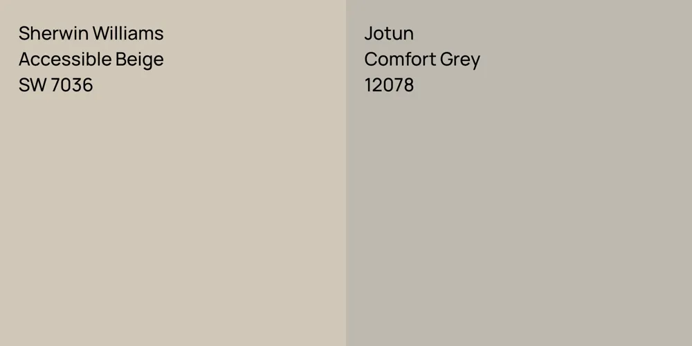 Despite their differences, both colors share a similar value, Sherwin Williams SW 7036 radiating a lighter essence compared to 12078.