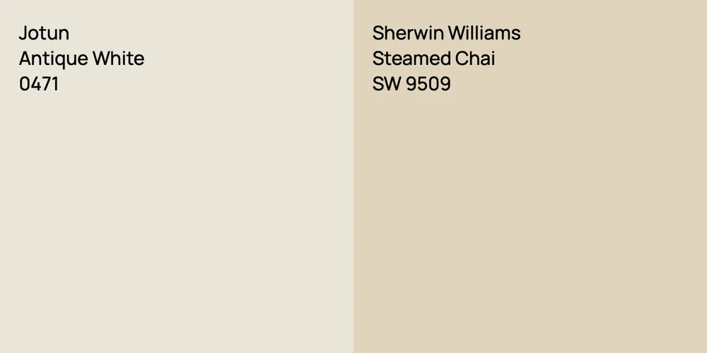 Despite their differences, both colors share a similar value, Jotun 0471 radiating a lighter essence compared to SW 9509.