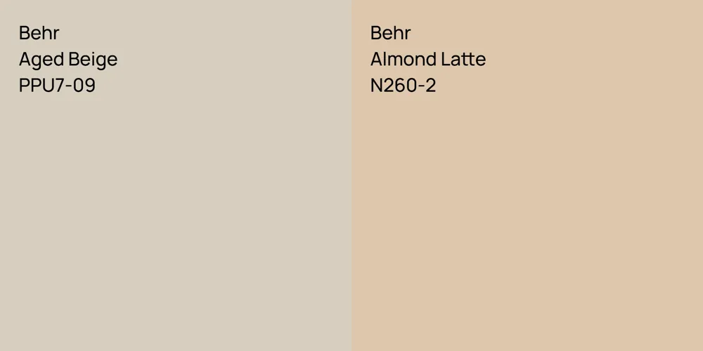 Despite their differences, both colors share a similar value, Behr PPU7-09 radiating a lighter essence compared to N260-2.