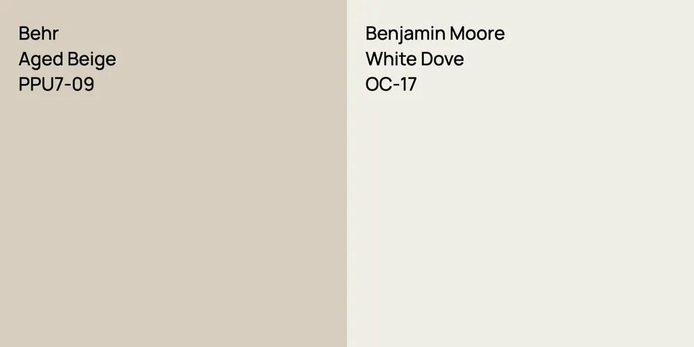 The colors, each unique in their hue and saturation, embody their own individual beauty and value. It's important to note that the colors have different hues. Behr PPU7-09 leans towards hues, while Benjamin Moore OC-17 is .
