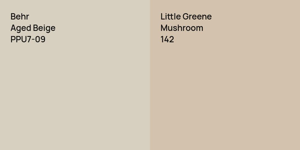 Despite their differences, both colors share a similar value, Behr PPU7-09 radiating a lighter essence compared to 142.