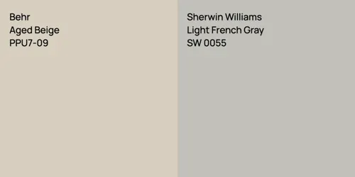 Despite their differences, both colors share a similar value, Behr PPU7-09 radiating a lighter essence compared to SW 9611.