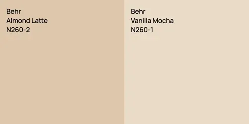 Behr N260-2 and 1122 differ significantly in saturation. Behr N260-2 is more saturated.