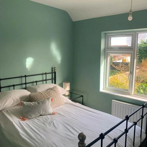 It's important to keep in mind that the same color may appear differently on various surfaces due to the nature of those surfaces. For example, the same shade will look different on a rough wall compared to the smooth surface of cabinets.