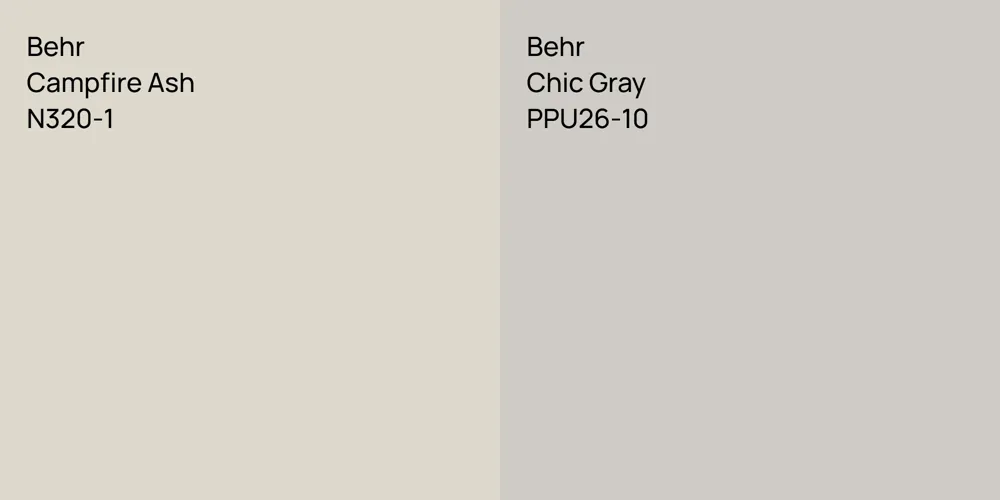 Despite their differences, both colors share a similar value, Behr N320-1 radiating a lighter essence compared to PPU26-10.