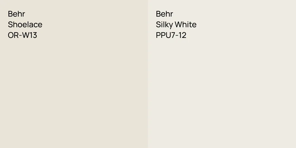 Despite their differences, both colors share a similar value, with Behr OR-W13 is being darker.
