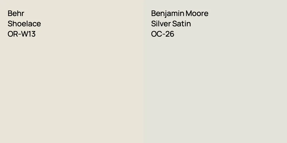 Despite their differences, both colors share a similar value, Behr OR-W13 radiating a lighter essence compared to OC-26.