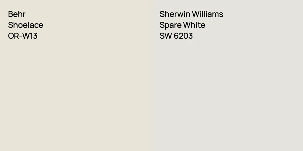Behr OR-W13 and SW 6203 differ significantly in saturation. Behr OR-W13 is more saturated.