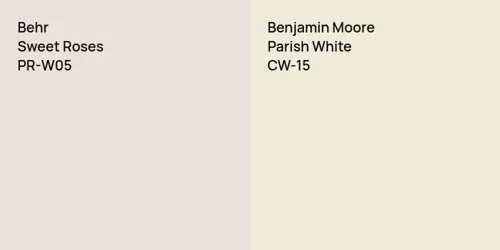 The colors, each unique in their hue and saturation, embody their own individual beauty and value. It's important to note that the colors have different hues. Behr PR-W05 leans towards hues, while Benjamin Moore OC-25 is .
