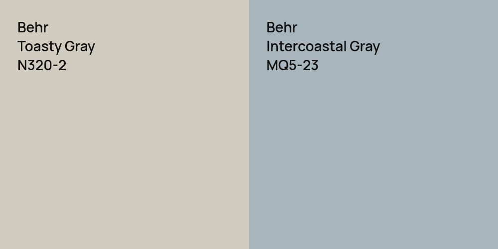 Despite their differences, both colors share a similar value, Behr N320-2 radiating a lighter essence compared to MQ5-23.