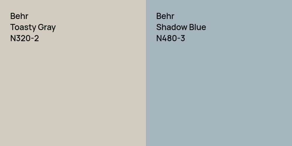 Despite their differences, both colors share a similar value, Behr N320-2 radiating a lighter essence compared to N480-3.