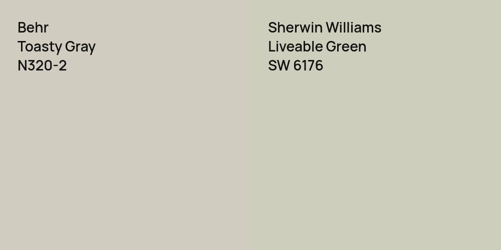 Despite their differences, both colors share a similar value, Behr N320-2 radiating a lighter essence compared to SW 6176.