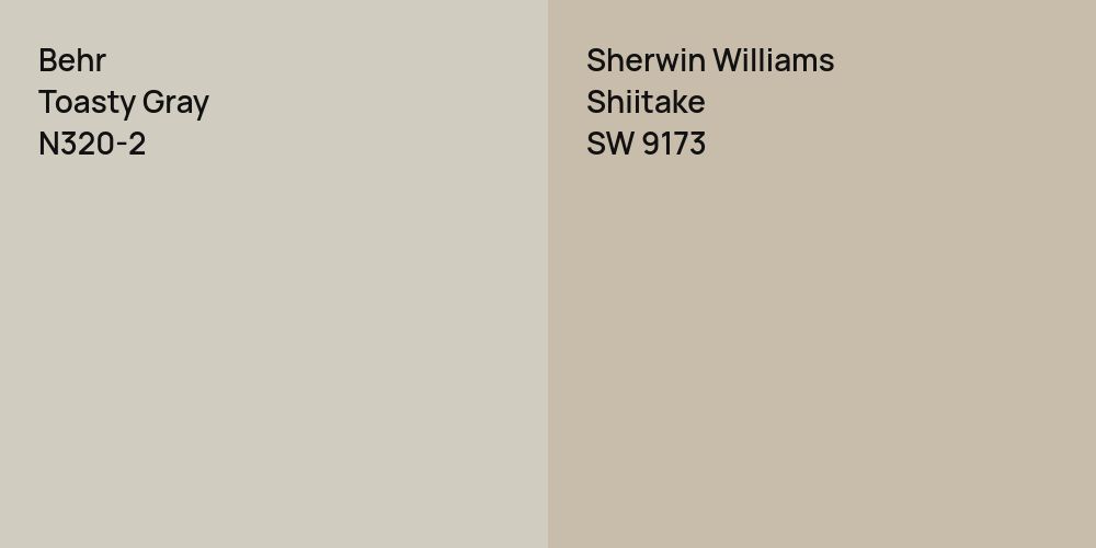 Despite their differences, both colors share a similar value, Behr N320-2 radiating a lighter essence compared to SW 9173.