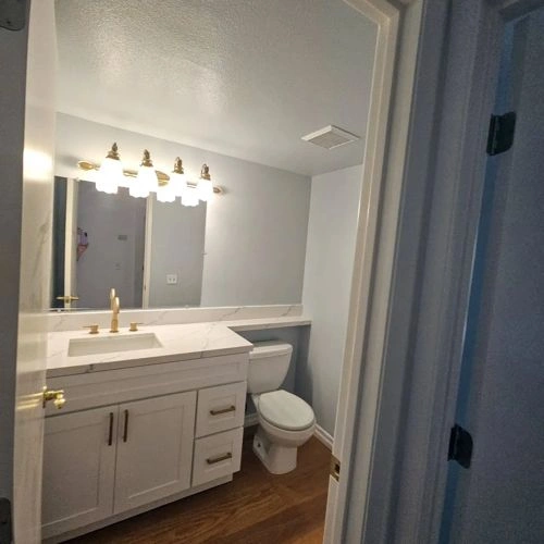 It's important to keep in mind that the same color may appear differently on various surfaces due to the nature of those surfaces. For example, the same shade will look different on a rough wall compared to the smooth surface of cabinets.