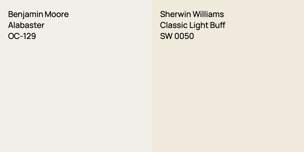 Despite their differences, both colors share a similar value, Benjamin Moore OC-129 radiating a lighter essence compared to SW 0050.