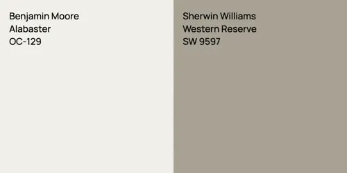 Despite their differences, both colors share a similar value, Benjamin Moore OC-129 radiating a lighter essence compared to SW 2829.