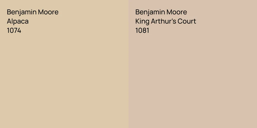 Benjamin Moore 1074 and 1081 differ significantly in saturation. Benjamin Moore 1074 is more saturated.