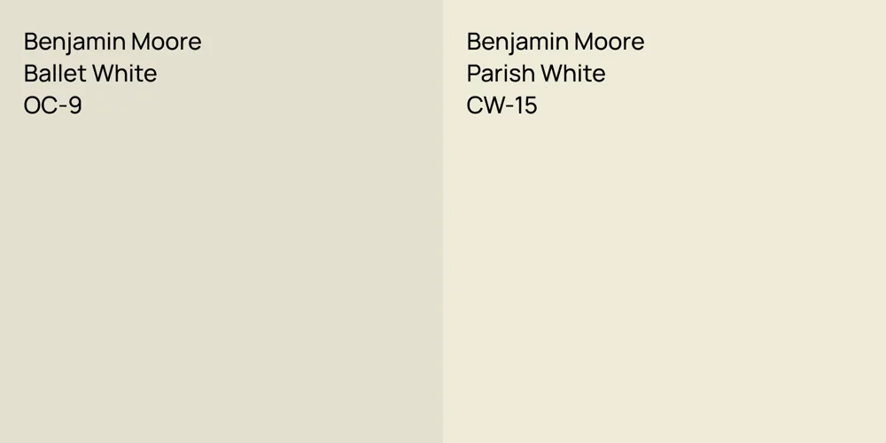 Despite their differences, both colors share a similar value, with Benjamin Moore OC-9 is being darker.