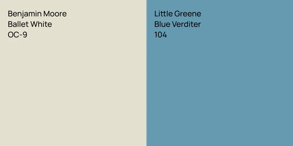 We understand how important it is to remember the details. The colors, each with their own unique beauty and value, are truly special. It's important to note that the colors have different hues. Benjamin Moore OC-9 leans towards hues, while Little Greene 104 is .