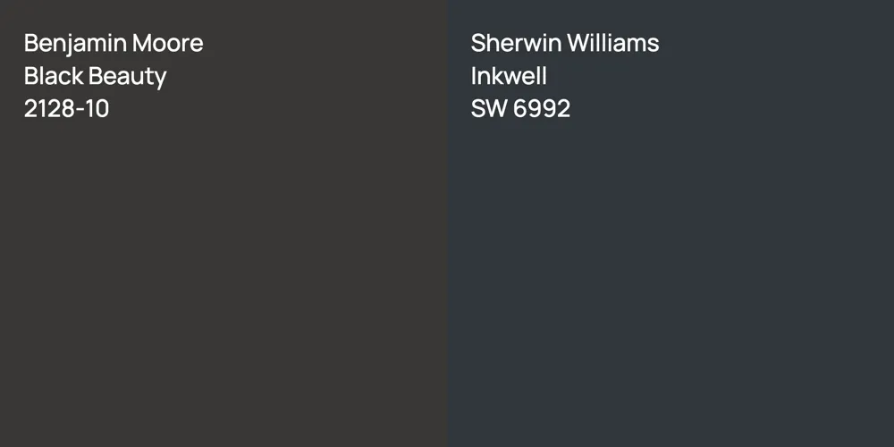 Despite their differences, both colors share a similar value, Benjamin Moore 2128-10 radiating a lighter essence compared to SW 6992.