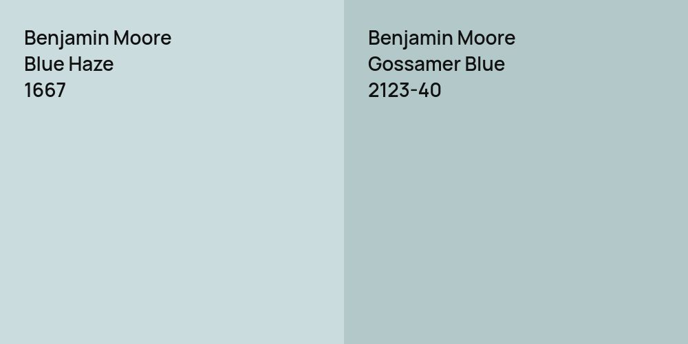 Benjamin Moore 1667 and 2123-40 differ significantly in saturation. Benjamin Moore 1667 is more saturated.