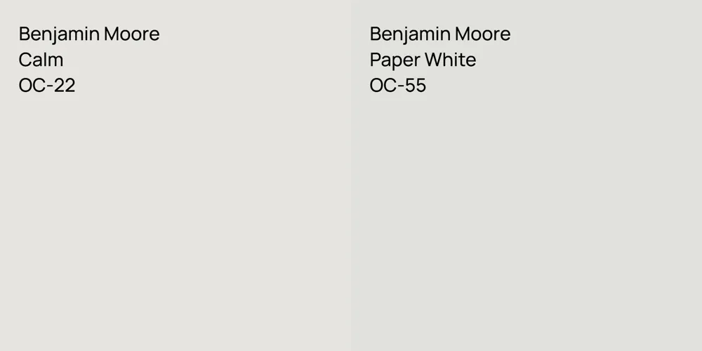 Despite their differences, both colors share a similar value, Benjamin Moore OC-22 radiating a lighter essence compared to OC-55.