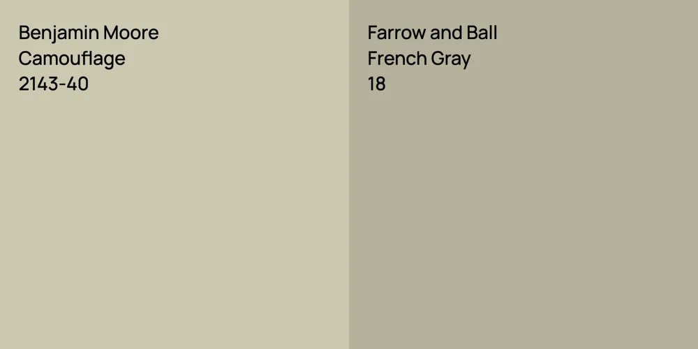 Despite their differences, both colors share a similar value, Benjamin Moore 2143-40 radiating a lighter essence compared to 18.