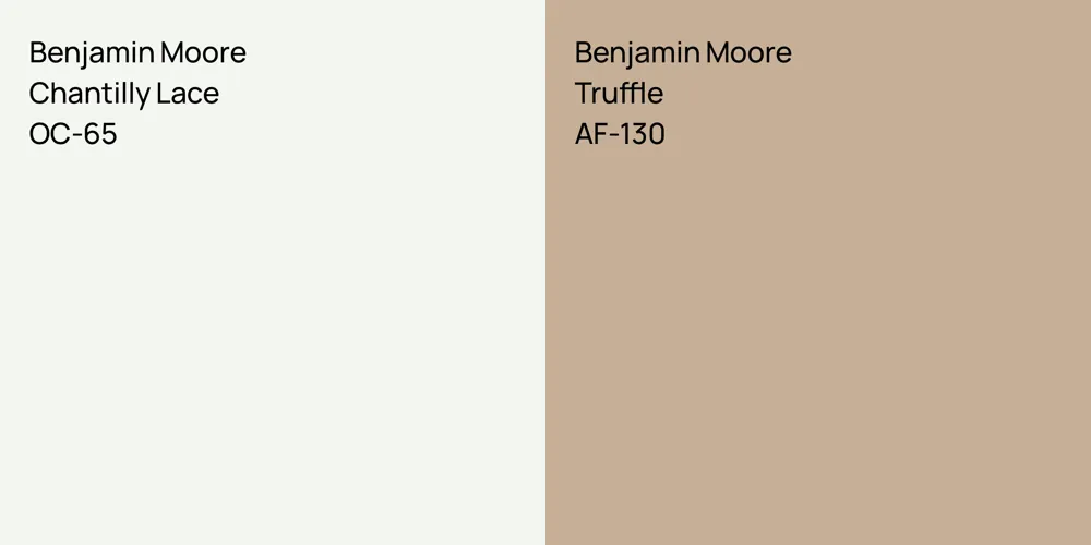 They differ in their values, Benjamin Moore OC-65 radiating a lighter essence compared to AF-130.