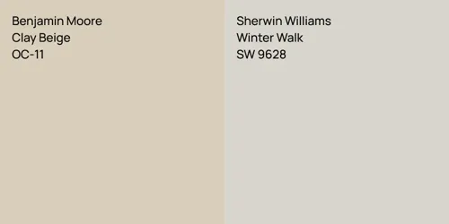 Despite their differences, both colors share a similar value, with Benjamin Moore OC-11 is being darker.