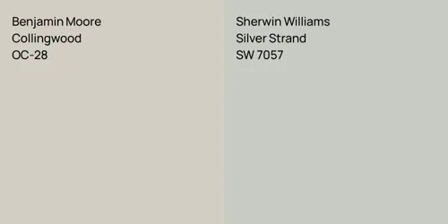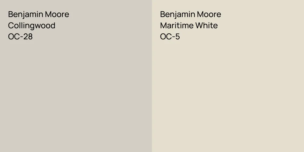 Despite their differences, both colors share a similar value, with Benjamin Moore OC-28 is being darker.