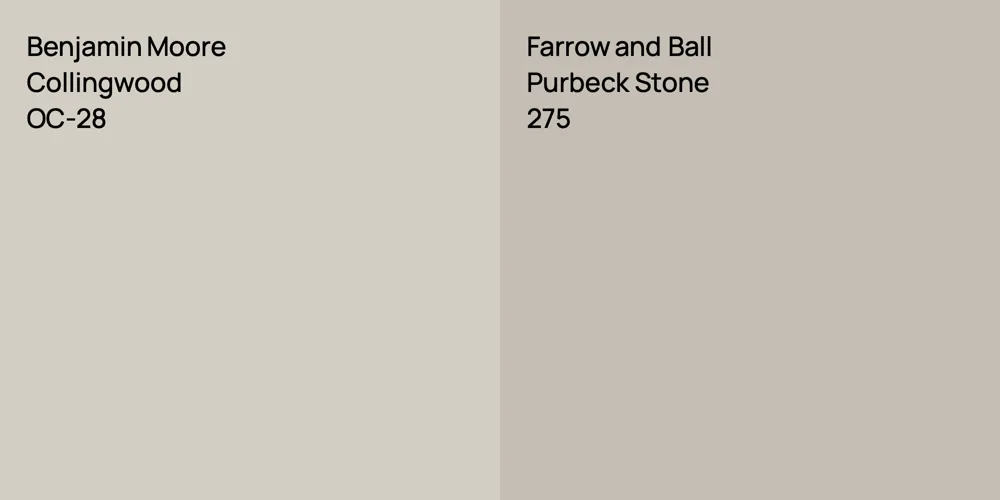 Despite their differences, both colors share a similar value, Benjamin Moore OC-28 radiating a lighter essence compared to 275.