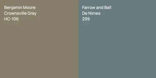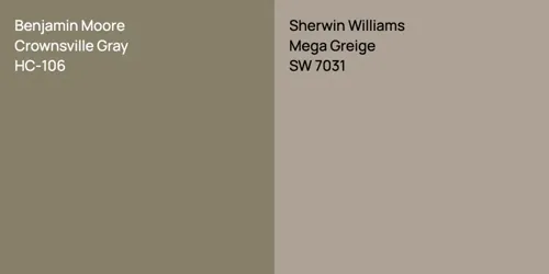 Color comparisons featuring Benjamin Moore Crownsville Gray