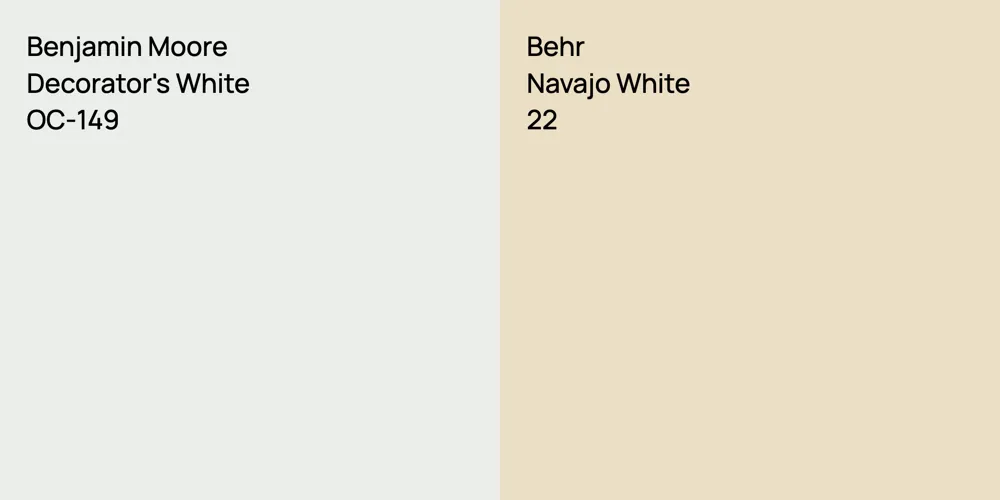 Despite their differences, both colors share a similar value, Benjamin Moore OC-149 radiating a lighter essence compared to 22.