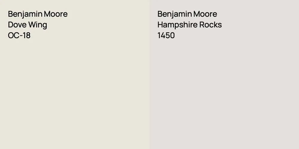 Despite their differences, both colors share a similar value, Benjamin Moore OC-18 radiating a lighter essence compared to 1450.