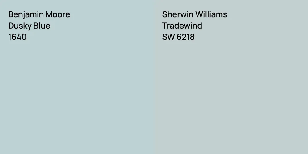 Benjamin Moore 1640 and SW 6218 differ significantly in saturation. Benjamin Moore 1640 is more saturated.