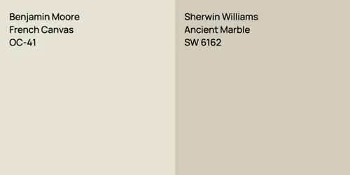 Despite their differences, both colors share a similar value, with Benjamin Moore OC-41 is being darker.